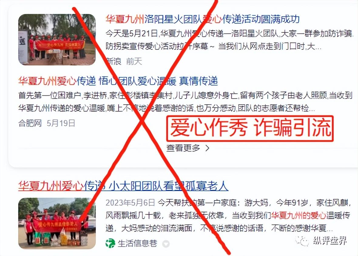 “华夏九州”这种是假慈善,真诈骗,也是未来主流的诈骗公益慈善资金盘,跟普通网络诈骗不同的是他很具有迷惑性,很容易让人上当!希望广大群众看清真相,不要重蹈前面几个慈善资金盘的覆辙!