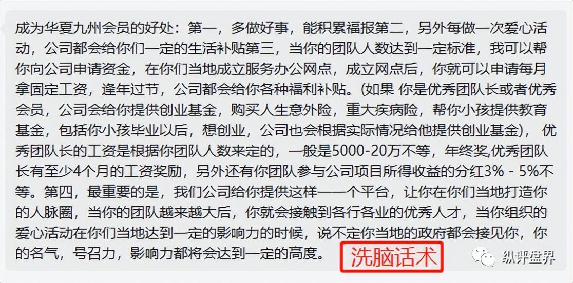 前段时间,本网先后曝光过华美俱乐部、起点俱乐部、同义汇、善德馨等平台,基本都是换汤不换药的类型,据网友反馈,又一个叫“华夏九州”的组织团队在到处拉人头行骗,让本网来曝光下。