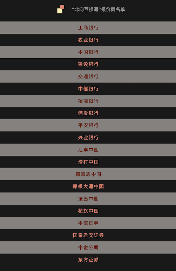 据第一财经了解,首批“北向互换通”报价商一共20家,涵盖了中外资银行和证券公司。多家报价商的交易员对记者表示,当日已与境外投资者顺利完成首笔交易,海外投资者对参与这一业务的热情颇高。