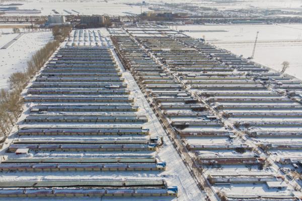 这是3月1日拍摄的黑龙江省红旗农场农业园区的蔬菜大棚(无人机照片)。新华社发(张涛摄)