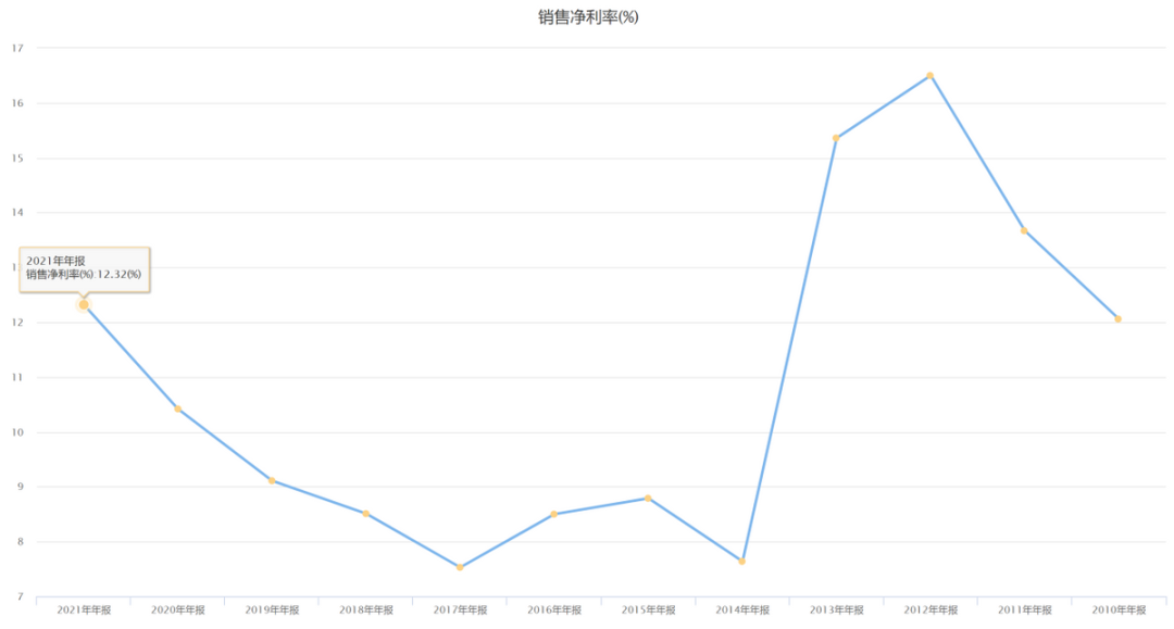 从2017年仅仅7.5%的净利率,一路攀升到2021年的12.3%,进步还是挺大的。