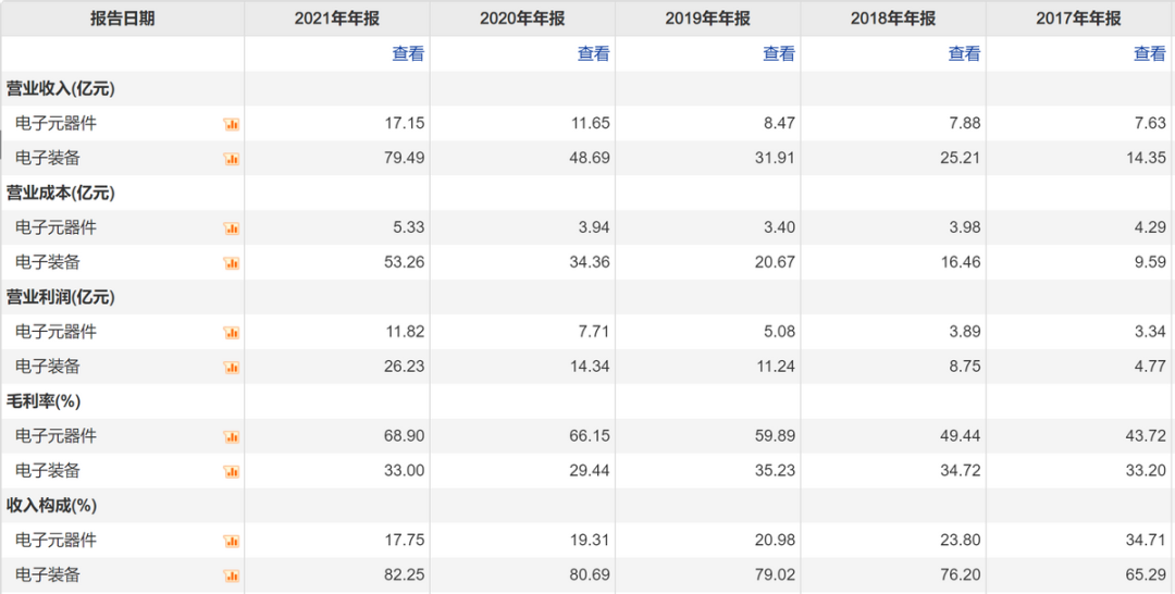 2021年的业绩增速有一部分是电子元器件贡献的,当然大头还是设备赚钱。