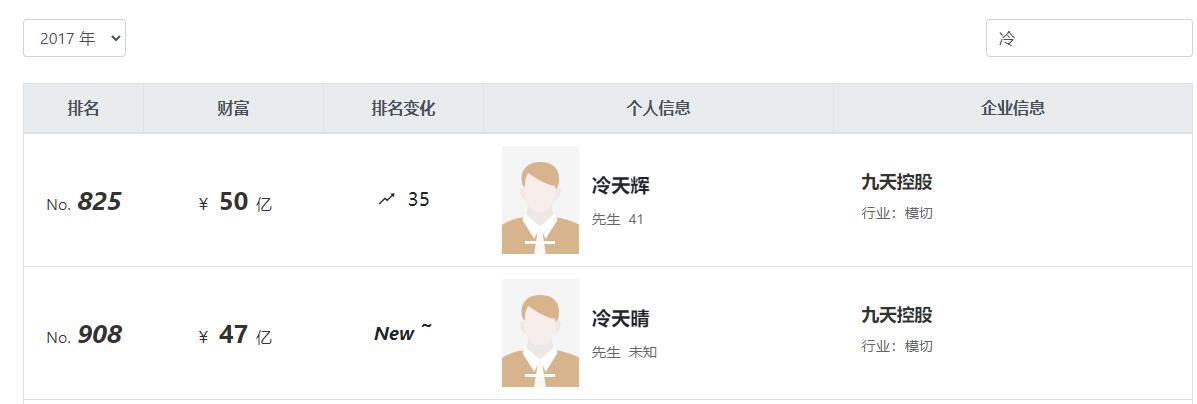 二哥冷天晴与冷天辉一起做生意。据胡润富豪榜2017年数据,两人身家合计97亿元,多年位列曲靖首富。