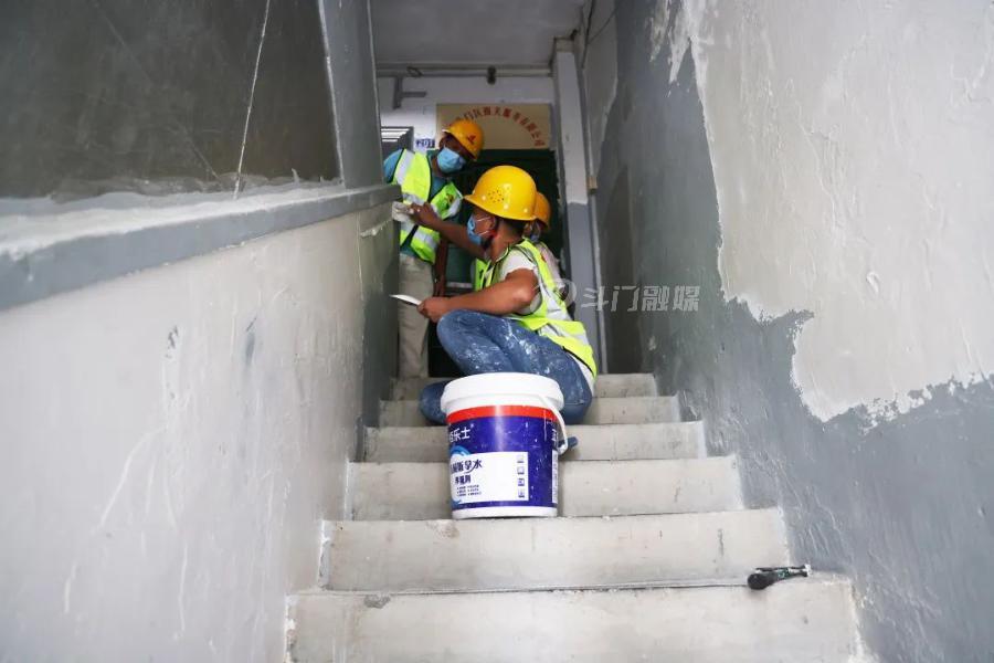 清扫、打磨、刮腻子、刷漆……只见工人进场后有条不紊地实施翻新工程,许多墙面褪去沉淀已久的污痕,恢复洁白。随后,工人们又移步至一面有着多个孔洞的墙体,通过砌砖和抹灰等娴熟的手法,进行修复。
