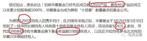 华夏基金在寻找十倍收益基金持有人活动,吸引26万人参加,但只有300余位持有华夏基金旗下收益超过10倍的投资人。但这事,我觉得吧,主要还是在持有人身上,为什么呢?