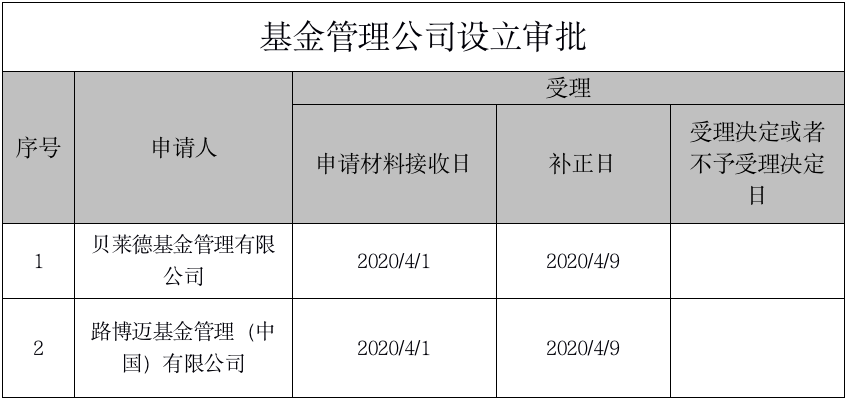证监会网站显示,4月1日,贝莱德及路博迈两家外资资管机构正式递交公募基金设立申请。