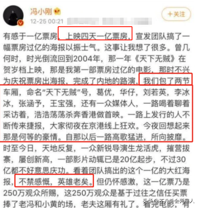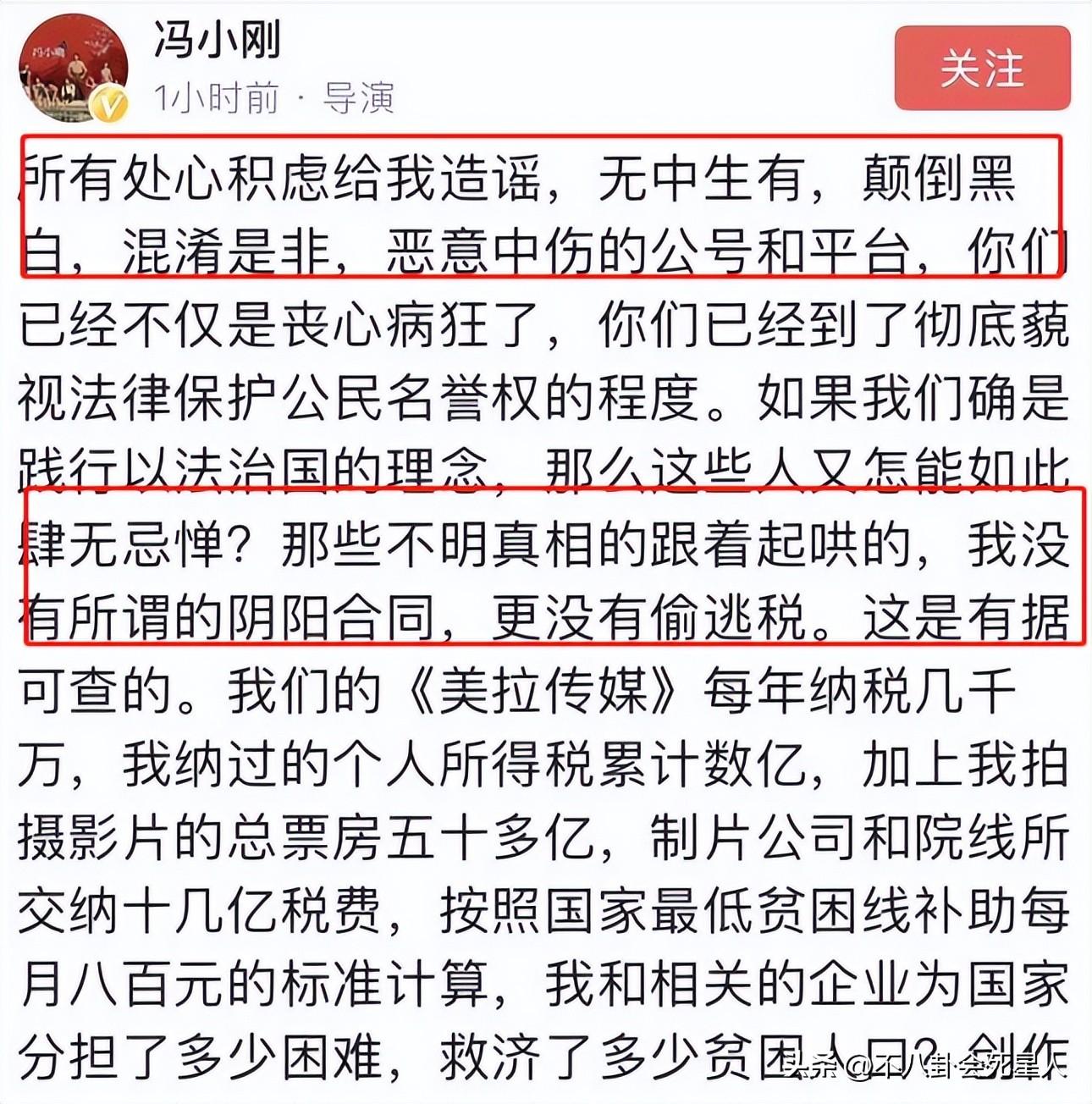 一气之下,小崔直接曝出范爷和冯小刚之间的天价片酬、问题合同、偷漏税等问题,冯小刚还大言不惭地发文反驳。
