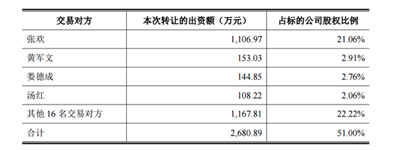 交易对方为张欢、黄军文、娄德成、汤红以及其他16名交易对方。完成资产置换后,上市公司实际控制人陶建伟以及陶士青、金韫之再将其持有的上市公司8240.78万股股份(占总股本的17.94%)以协议转让、大宗交易等法律法规允许的方式转让给张欢等共计15名股份受让方。