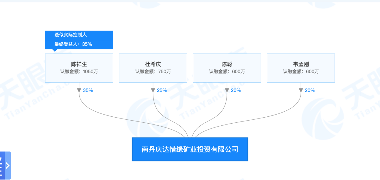 资料显示,陈祥生持股35%为大股东,杜希庆持股25%为第二大股东,陈聪和韦孟刚均持股20%,为第三大股东。