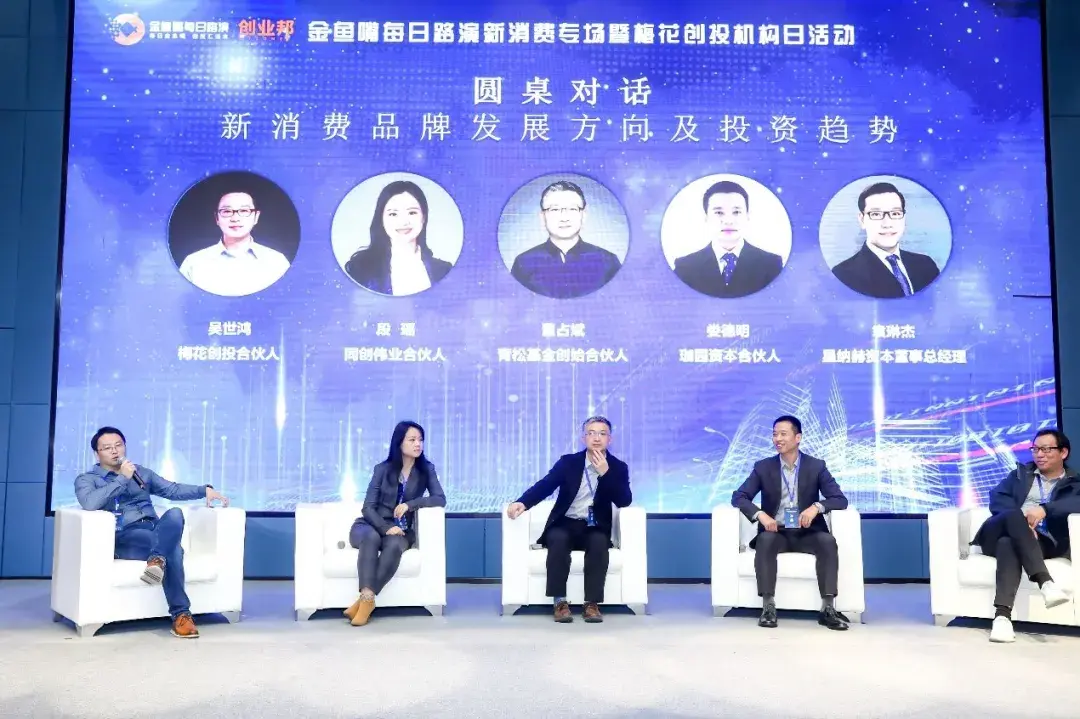 在主题为《新消费品牌发展方向及投资趋势》的圆桌对话环节中,吴世鸿,段瑶,董占斌,娄德明,袁琳杰等嘉宾深入探讨了新消费的发展趋势以及投融资前景。