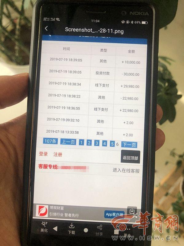 广西的李先生也有类似遭遇,在“博观财富”上,刚开始选择投1000元2天期的,按照每天1个点的利息,两天后账户确实多了20元,且可以提现。他就加大投资,选择8天期的,投了5000元进去,利息是每天1.08个点。8天期限到期后,李先生仍可以提现。但App有规定,每个投资品种只能投资一次,这意味着如果他还想继续投资,就只能选择更大的投资额度和更长期限的。在前两次都获利的基础上,李先生没多想,又选择了20天期的,投资了8000元,利息是每天1.3个点。但7月23日之后,他遇上了和史女士一样的问题,无法提现。
