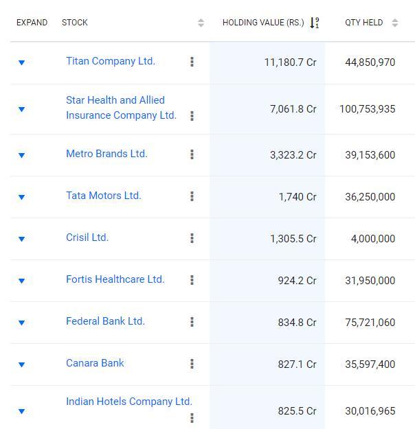 。他所公开的投资组合的价值从2020年3月的843.1亿卢比上升到2022年8月的3065.2亿卢比(约合38.6亿美元)。