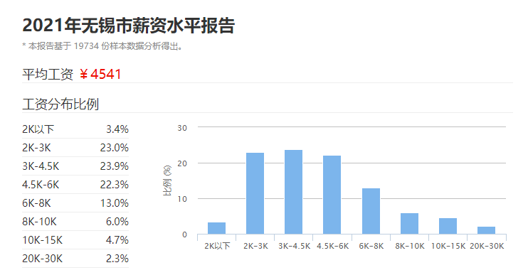 据招聘网信息,无锡2021平均薪资4541元,堂堂无锡,还不如江苏GDP排名末尾的宿迁(4556元)。