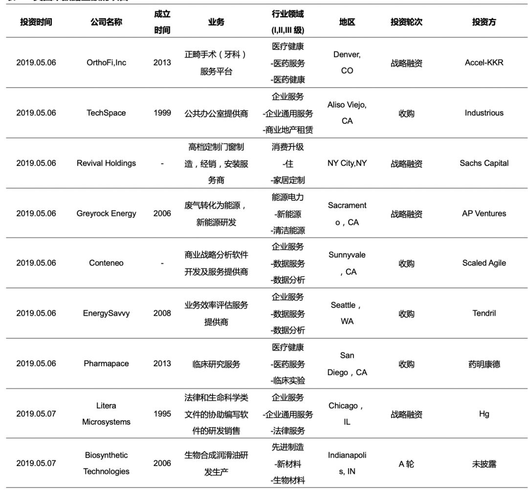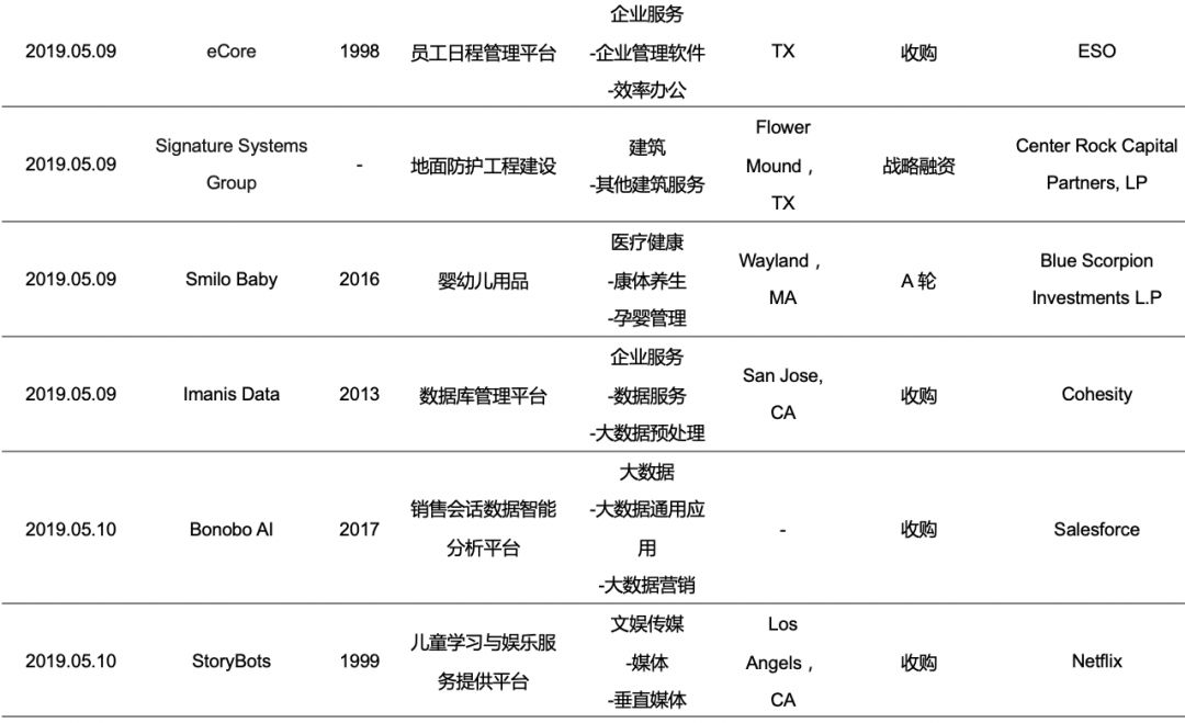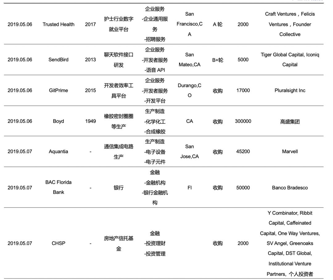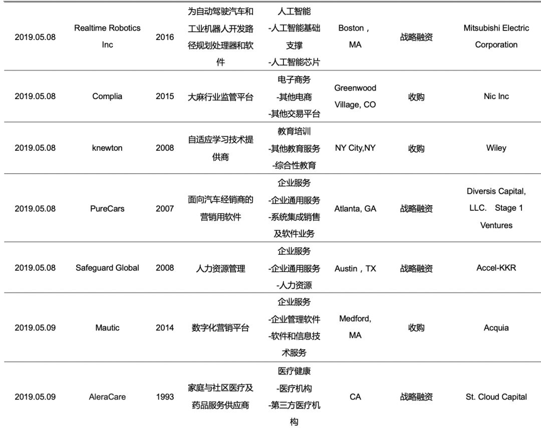 过去一周,发生并购/收购的中国和美国公司分别有13家和16家。从并购/收购项目所在行业领域上看,美国分布在企业服务(7笔)、医疗健康(3笔)、电子商务(2笔)、生产制造(1笔)、金融(1笔)、教育培训(1笔)和文娱传媒(1笔)等领域;中国分布在生产制造(3笔)、医疗健康(2笔)、物流运输(2笔)、教育培训(1笔)、农业(1笔)、开采(1笔)、建筑(1笔)、房产家居(1笔)和先进制造(1笔)等领域。