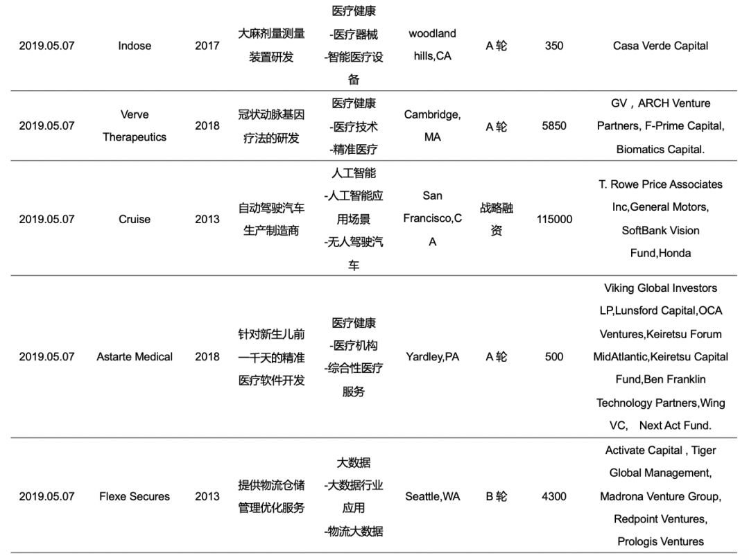 我们还挑选了5家过去一周最具代表性的获投企业,分别是:自动驾驶汽车生产制造商Cruise,区块链技术金融科技公司tZero,人脸识别云计算平台旷视科技Face++,基因服务商华大智造和智能电动车以及智能汽车研发商拜腾。