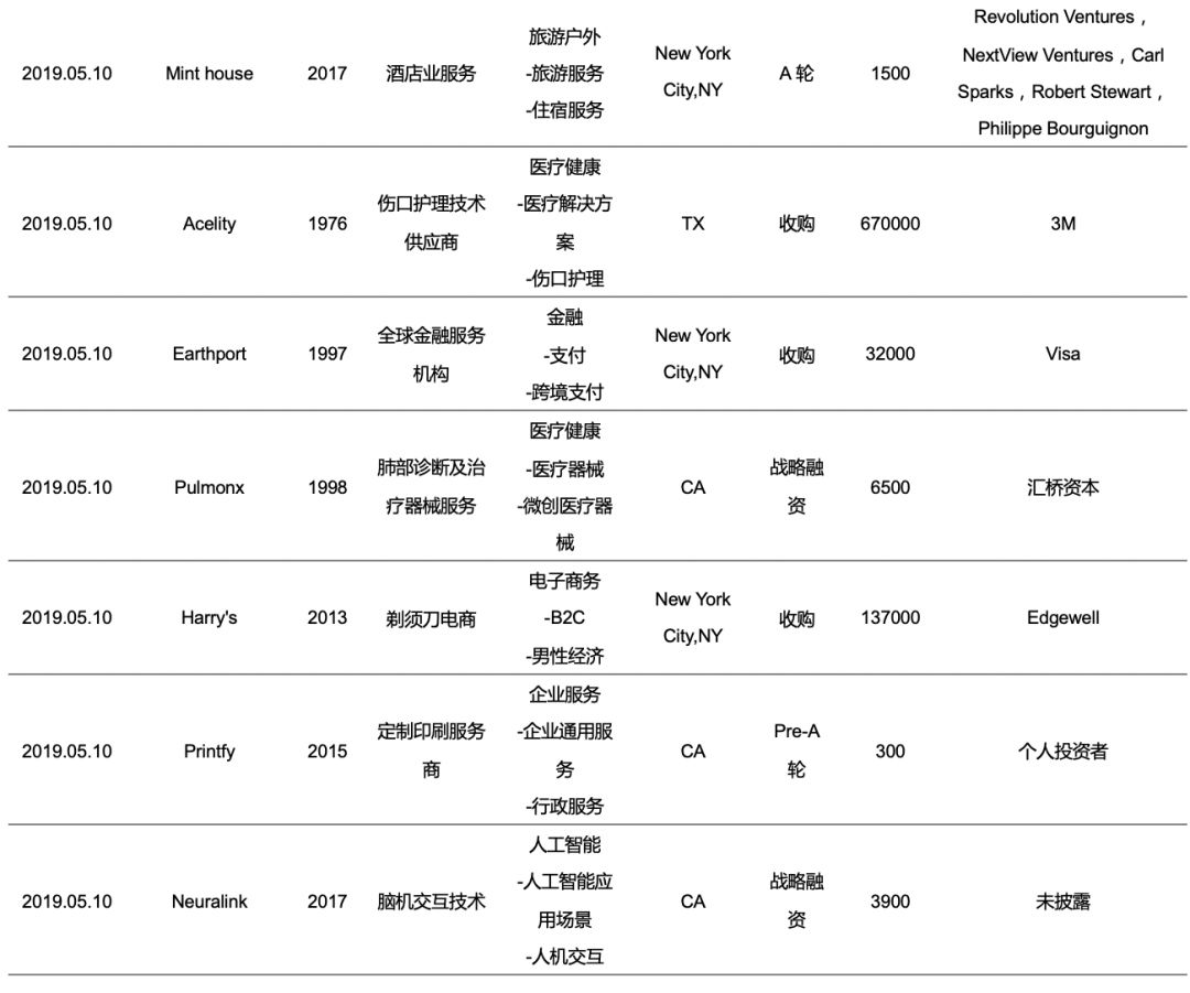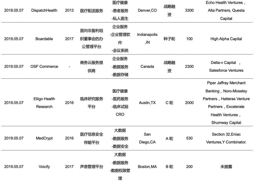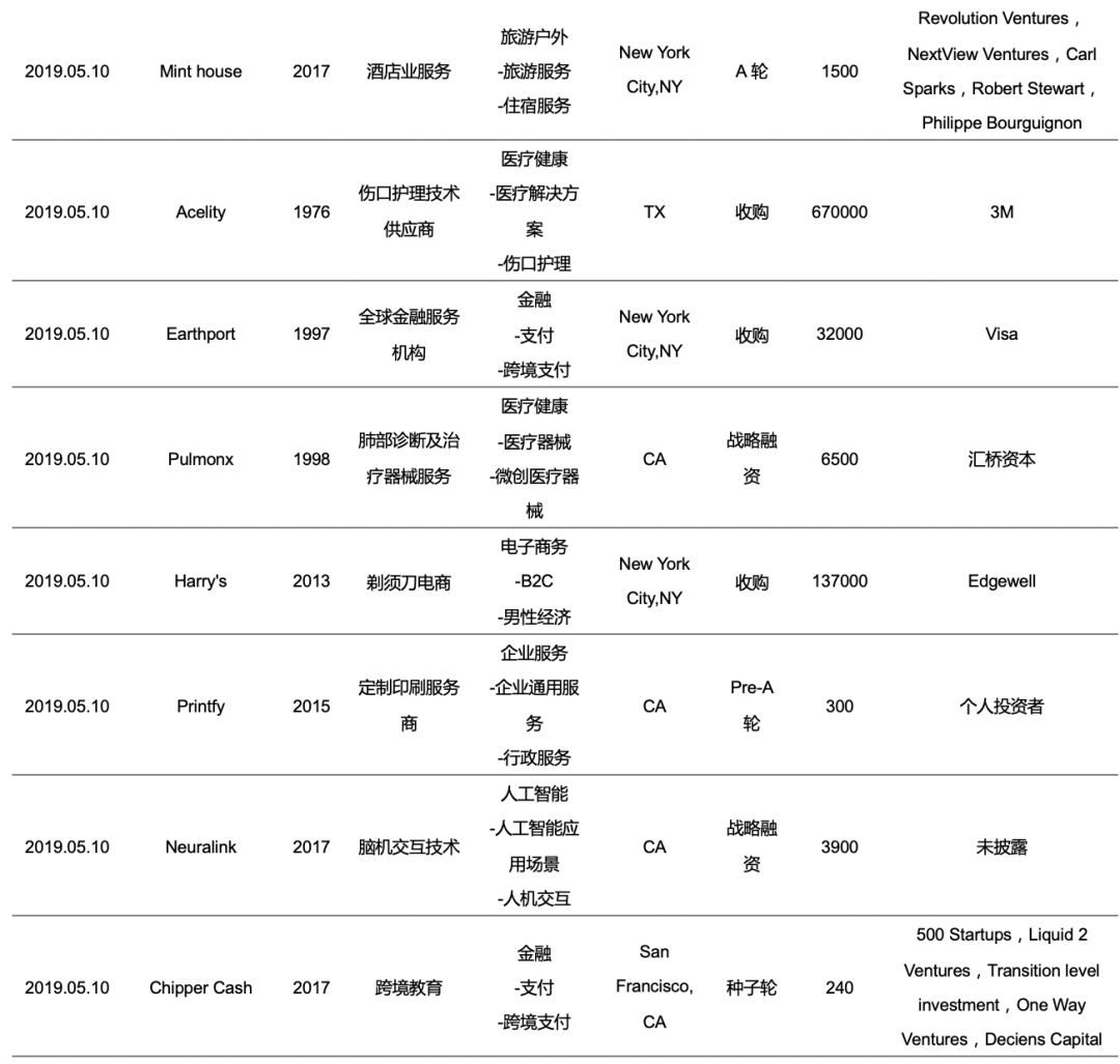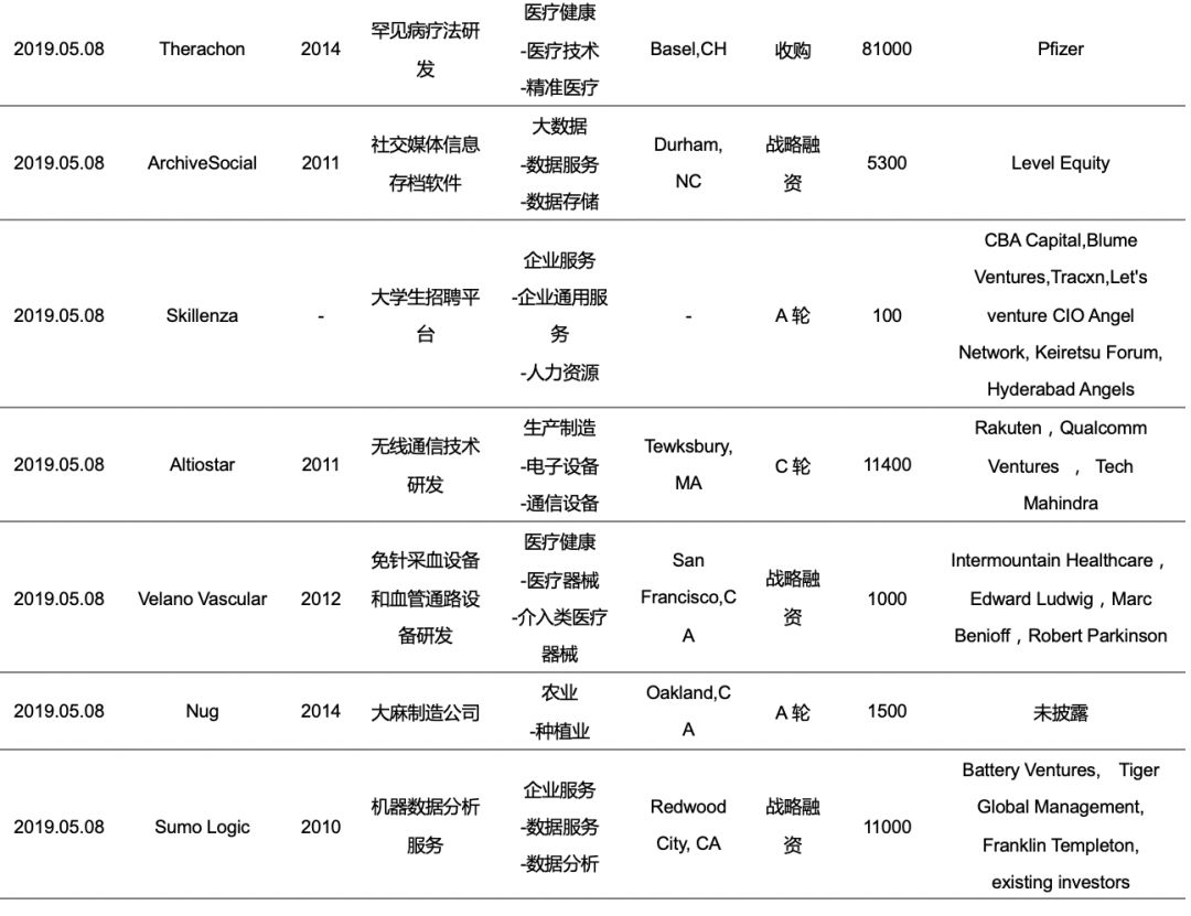 过去一周,2019年5月6日至2019年5月12日,中国和美国分别有74家和80家非上市公司获得各类融资,中/美同比下降70%/下降58%,中/美环比上升100%/下降7%。医疗健康领域领跑本周中国市场,占比约为12%,本周美国市场的投融资热点也是医疗健康领域,占比约为26%。
