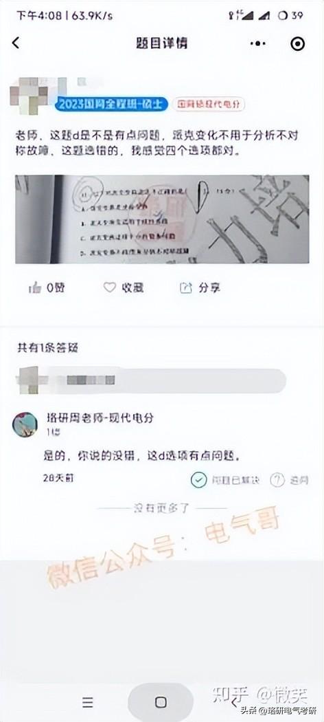 电分:大概考了10分多,今年电分考的比较基础,考了正序等效、短路电流的计算等,都比较常规。让我印象最深的是有一道隐极机的暂态模型下的极限稳定功角的题,讲义上没有提及,我只在李光琦的暂态书上看到过。