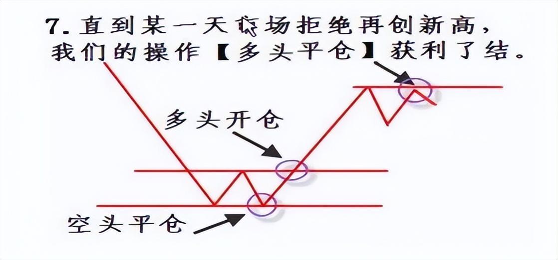 7、直到某一天市场拒绝再创新高,我们的操作【多头平仓】获利了结,此时应快速卖出,止盈。