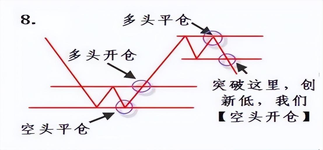 8、突破这里,创新低,我们【空头开仓】,此时立刻出局,锁定利润。