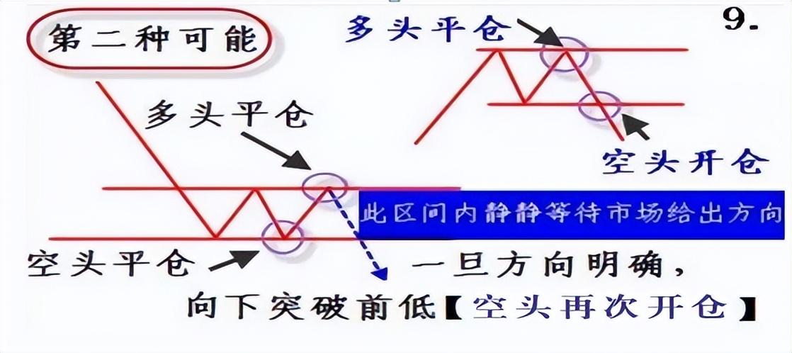 9、第二种可能:一旦方向明确,向下突破前低【空头再次开仓】,此时静观其变,选择方向。