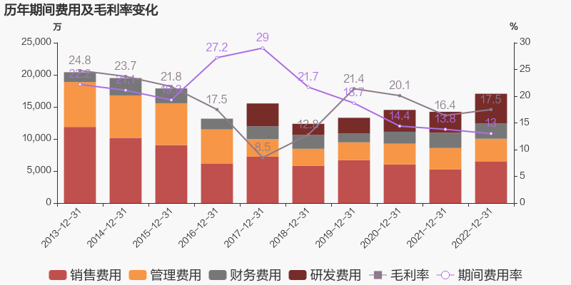 公司2022年营业成本10.78亿元,同比增长24.7%,低于营业收入26.4%的增速,导致毛利率上升1.1%。期间费用率为13%,较去年下降0.7个百分点。经营性现金流大幅下降146%至-5890万元。