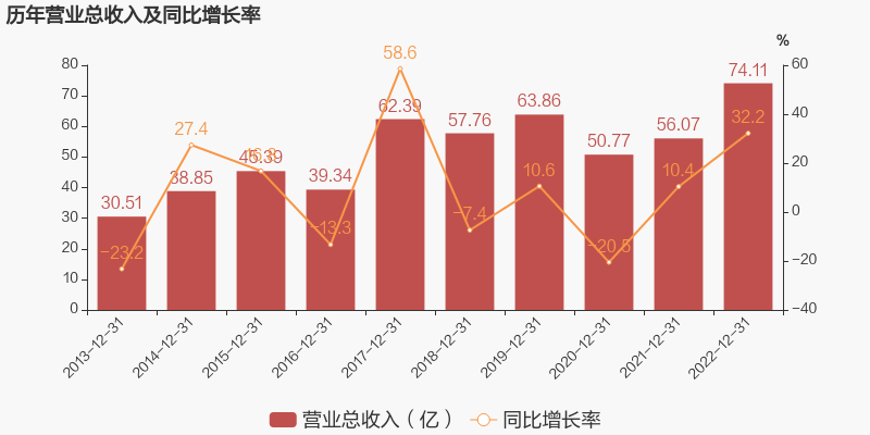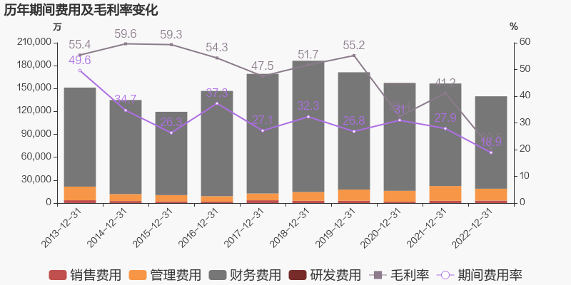 公司2022年营业成本58.93亿元,同比增长78.8%,高于营业收入32.2%的增速,导致毛利率下降20.7%。期间费用率为18.9%,较去年下降9.1%。