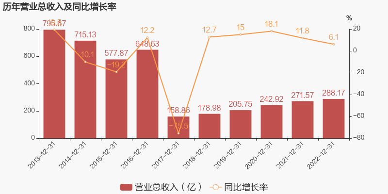 中铁工业于2023年3月28日披露年报,公司2022年实现营业总收入288.17亿元,同比增长6.1%;实现归母净利润18.67亿元,同比增长0.6%;每股收益为0.79元。