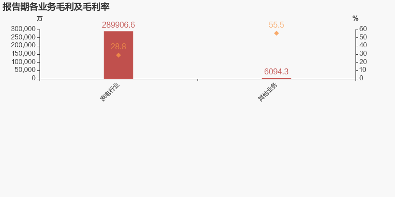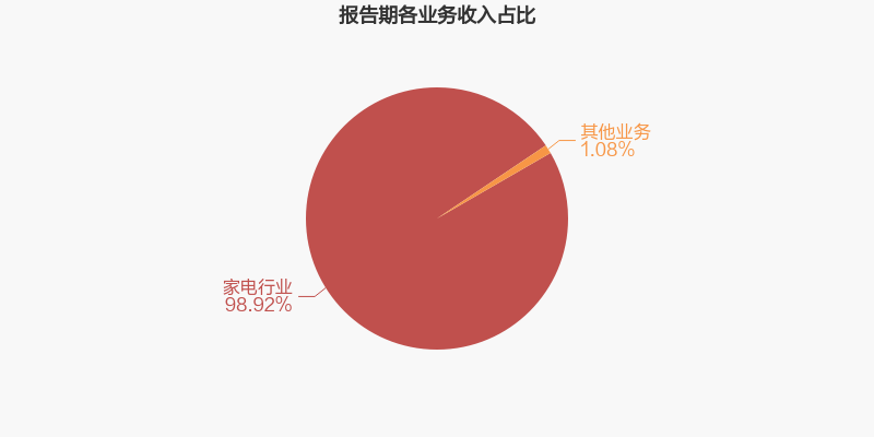 从业务结构来看,“家电行业”是企业营业收入的主要来源。具体而言,“家电行业”营业收入为100.67亿元,营收占比为98.9%,毛利率为28.8%。
