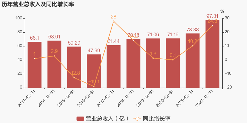 岳阳林纸于2023年3月11日披露年报,公司2022年实现营业总收入97.81亿元,同比增长24.8%;实现归母净利润6.16亿元,同比增长106.5%;每股收益为0.35元。