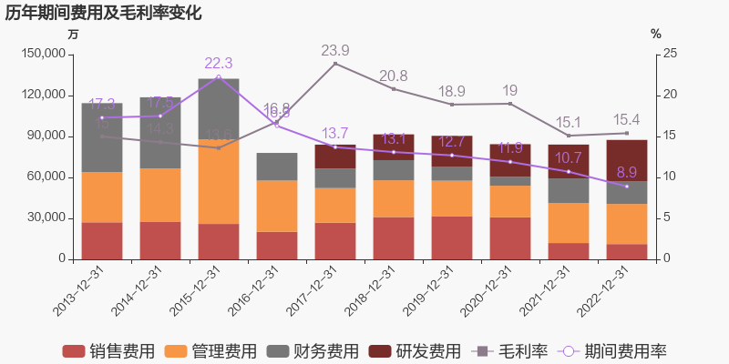公司2022年营业成本82.74亿元,同比增长24.4%,低于营业收入24.8%的增速,导致毛利率上升0.3%。期间费用率为8.9%,较去年下降1.8%。经营性现金流大幅上升122.4%至7.6亿元。