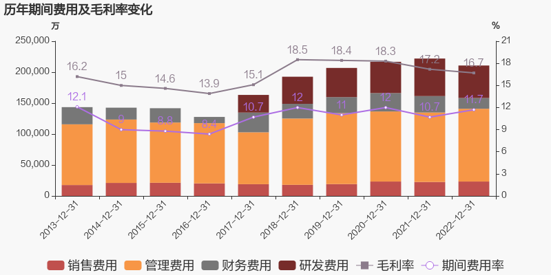 公司2022年营业成本150.43亿元,同比下降12.6%,低于营业收入13.2%的下降速度,毛利率下降0.6%。期间费用率为11.7%,较上年升高1.0个百分点。经营性现金流由11.03亿元下降至-1.53亿元,同比下降113.8%。