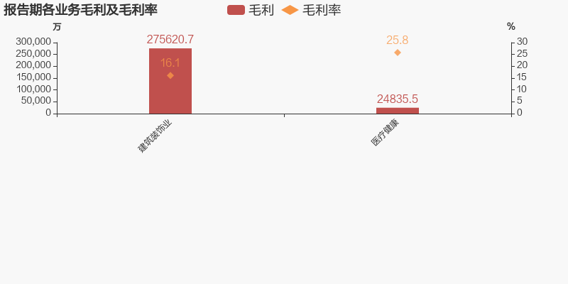 从业务结构来看,“建筑装饰业”是企业营业收入的主要来源。具体而言,“建筑装饰业”营业收入为170.85亿元,营收占比为94.7%,毛利率为16.1%。