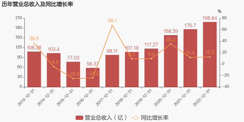 浙江东方于2023年4月8日披露年报,公司2022年实现营业总收入198.84亿元,同比增长12.5%;实现归母净利润9.47亿元,同比增长44.3%;每股收益为0.31元。