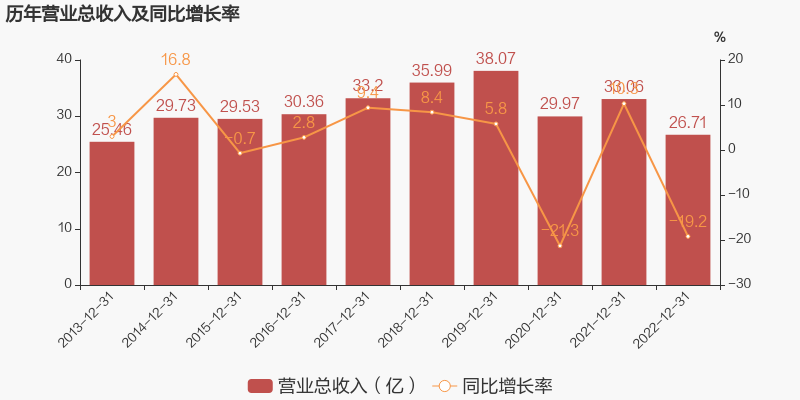 深圳机场于2023年3月31日披露年报,公司2022年实现营业总收入26.71亿元,同比下降19.2%;实现归母净利润-11.43亿元,上年同期为-3443.9万元,亏损幅度扩大。