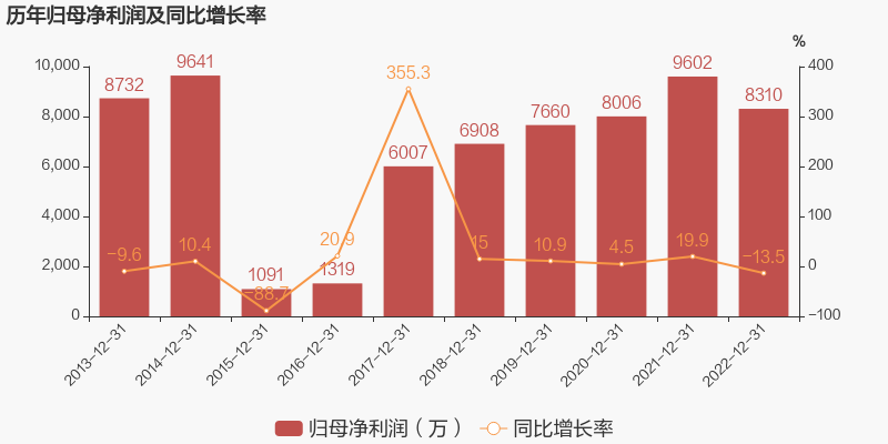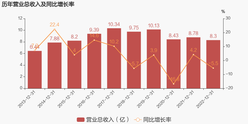 益盛药业于2023年4月19日披露年报,公司2022年实现营业总收入8.3亿元,同比下降5.5%;实现归母净利润8310万元,同比下降13.5%;每股收益为0.25元。