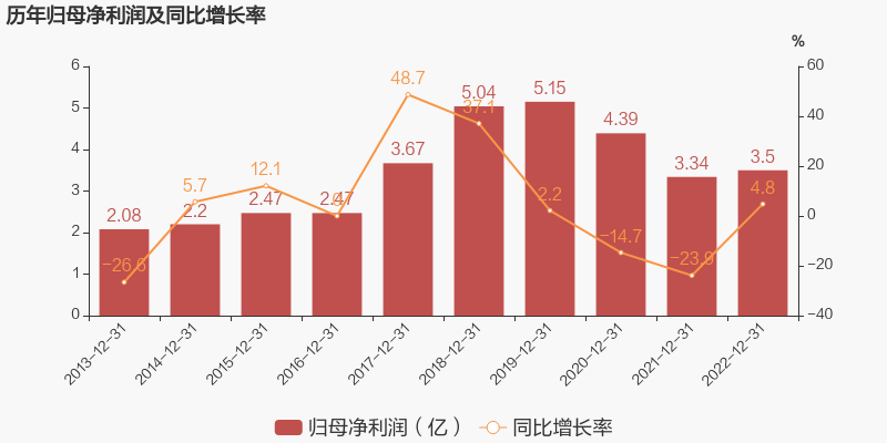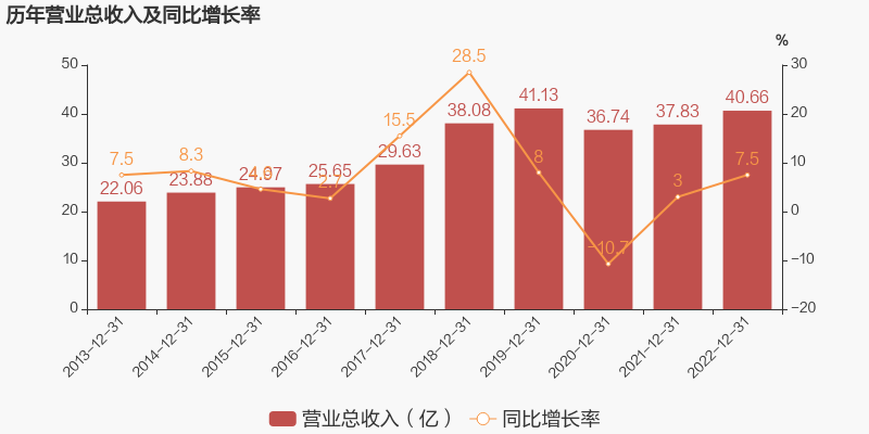 辰欣药业于2023年3月31日披露年报,公司2022年实现营业总收入40.66亿元,同比增长7.5%;实现归母净利润3.5亿元,同比增长4.8%;每股收益为0.77元。