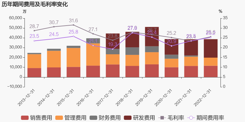 公司2022年营业成本11.37亿元,同比下降9.5%,高于营业收入6.9%的下降速度,毛利率上升2.2%。期间费用率为25.2%,较上年升高1.7%。经营性现金流大幅上升140.9%至9289万元。