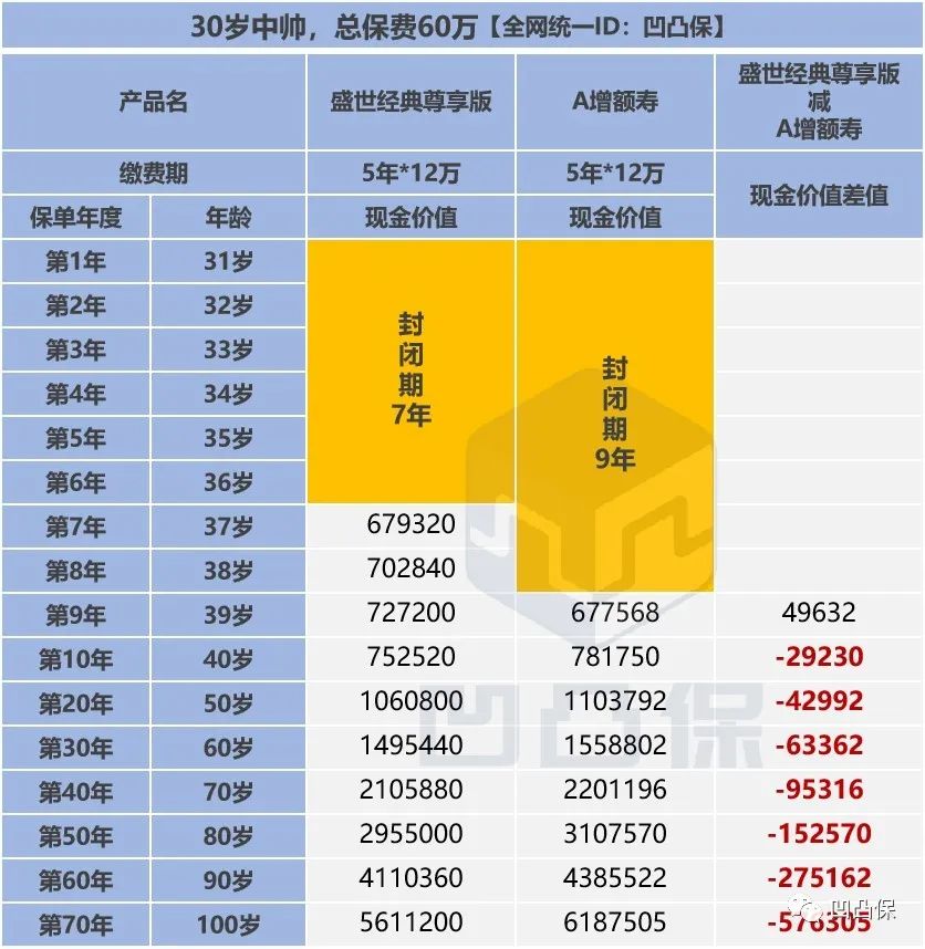盛世经典尊享版相较于旧版的盛世经典,前期现金价值有提升,后期却有降低。