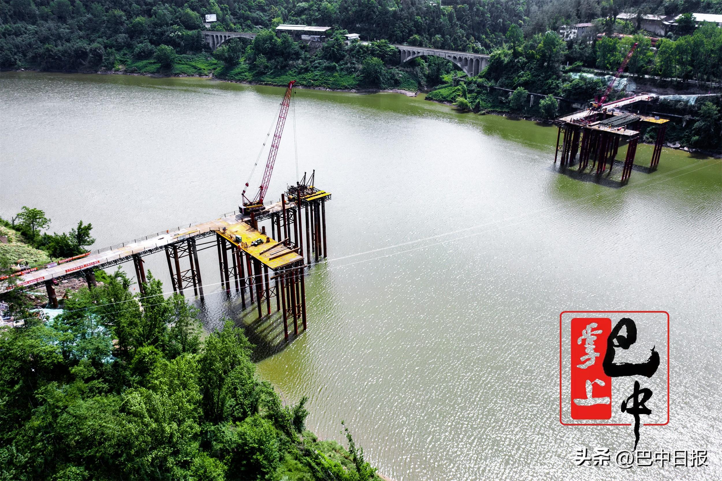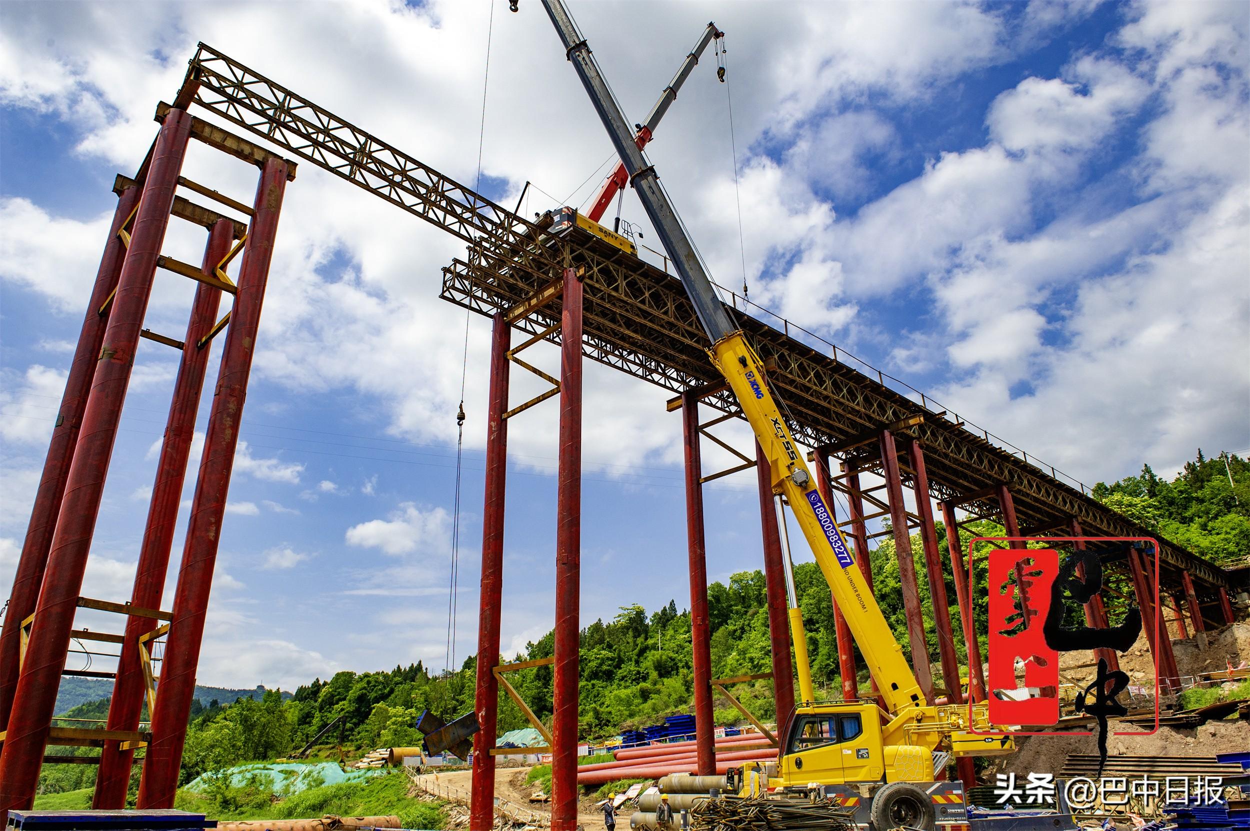 平昌县黄滩村,镇广高速白衣巴河特大桥进行钢便桥搭建施工