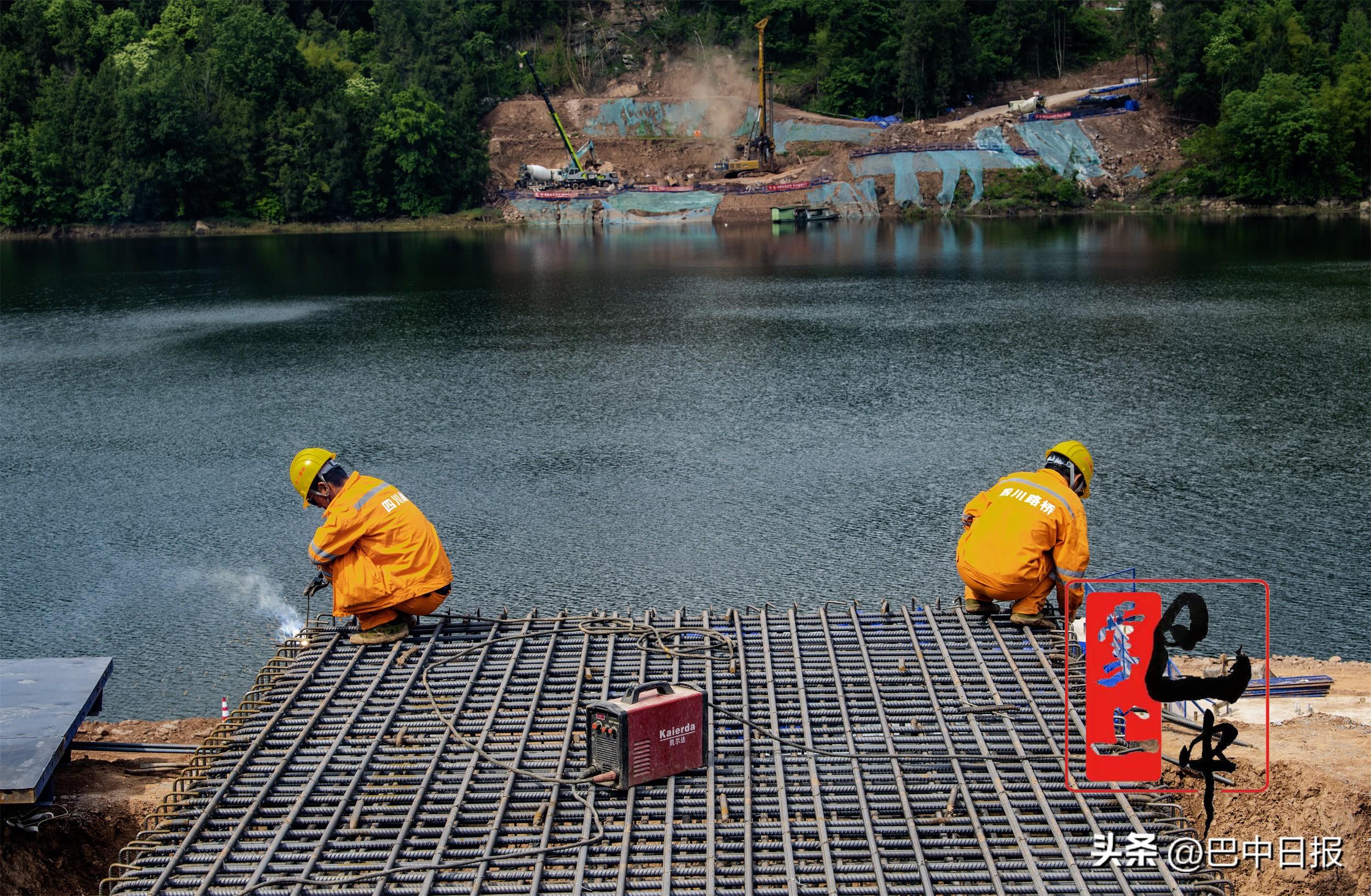 平昌县星光工业园,镇广高速连接线巴河特大桥钢便桥搭建施工