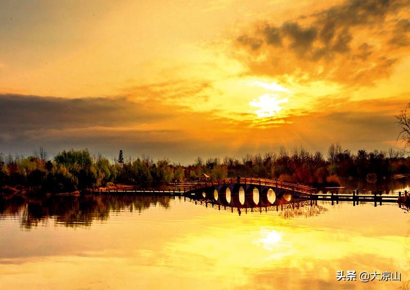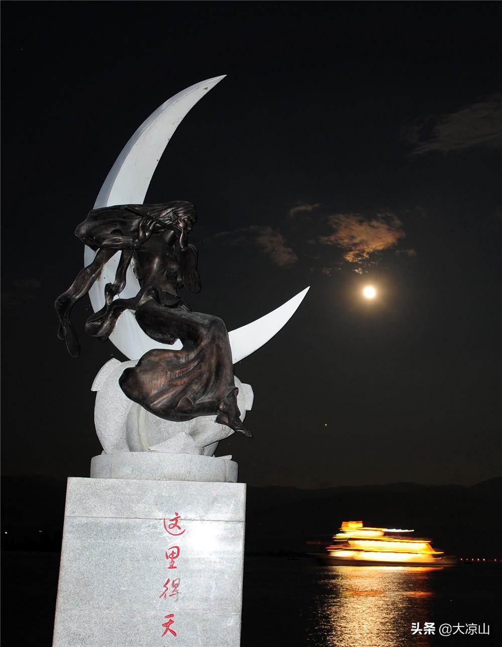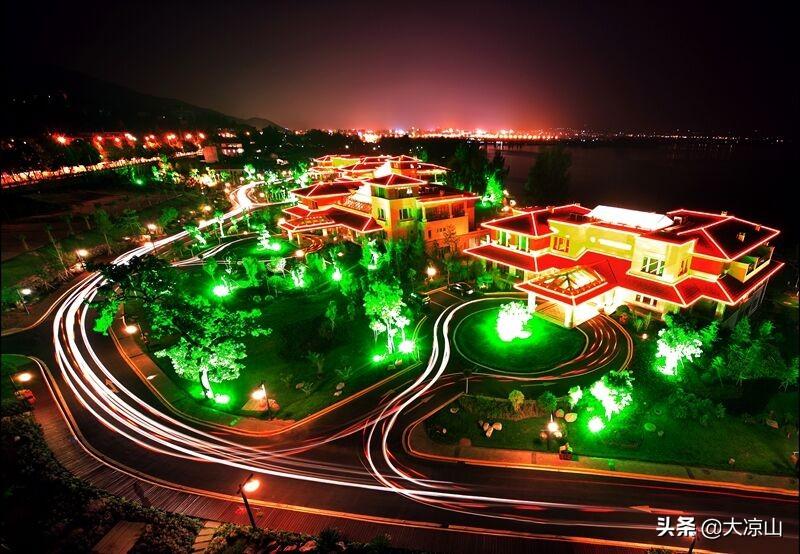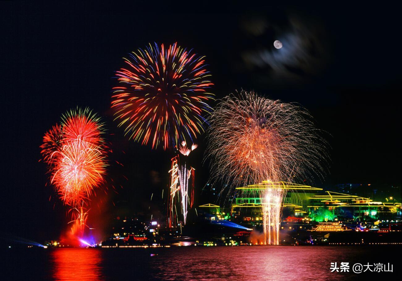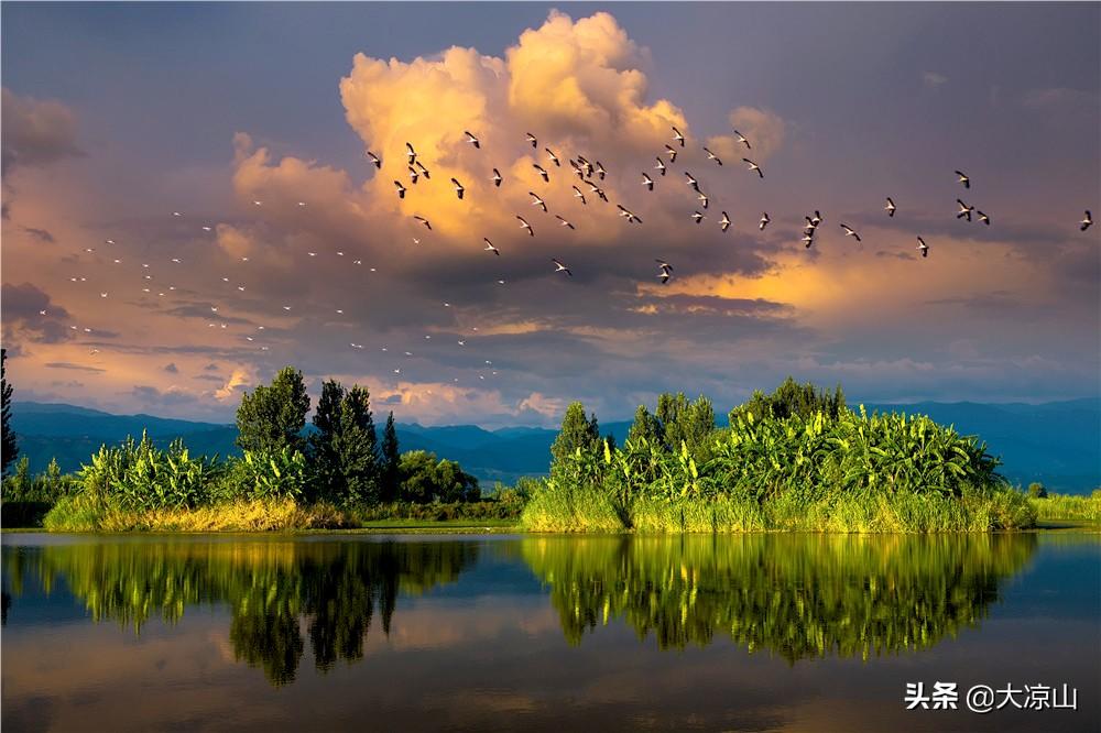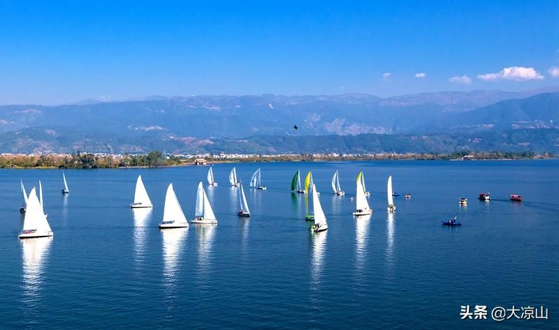 邛海碧波翻金浪,泸山绿涛夺眼帘。
