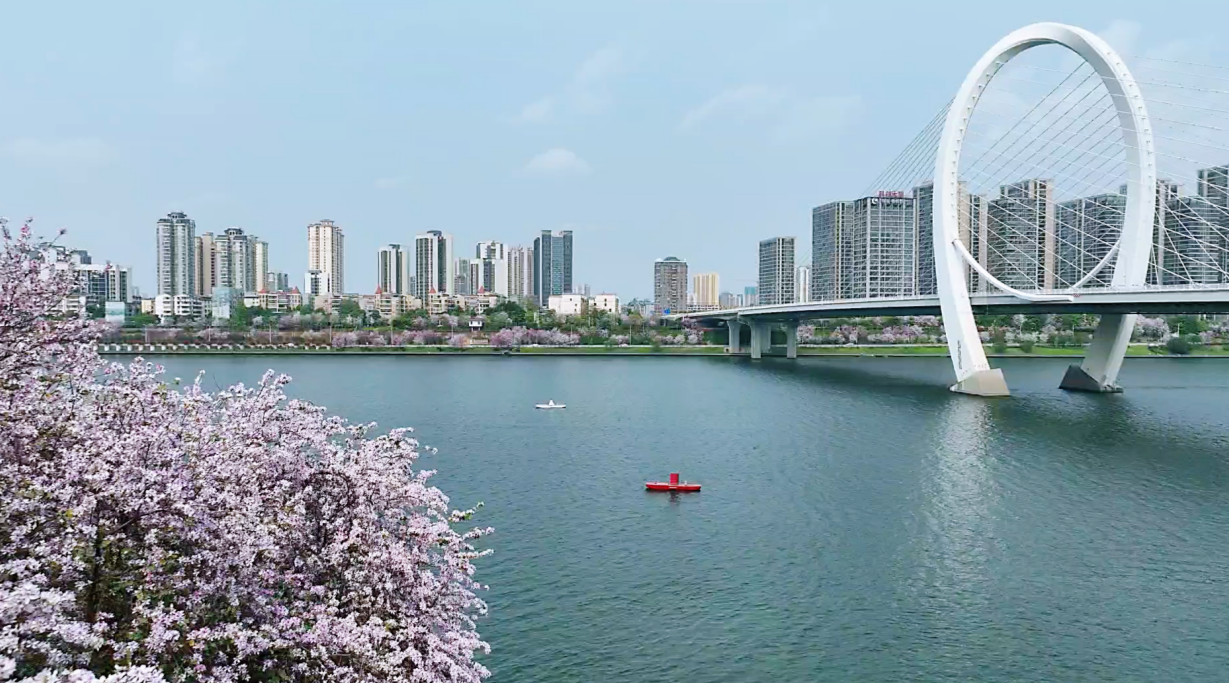江水清澈,花开两岸,柳北区风光秀美(央广网发 柳北区委宣传部供图)