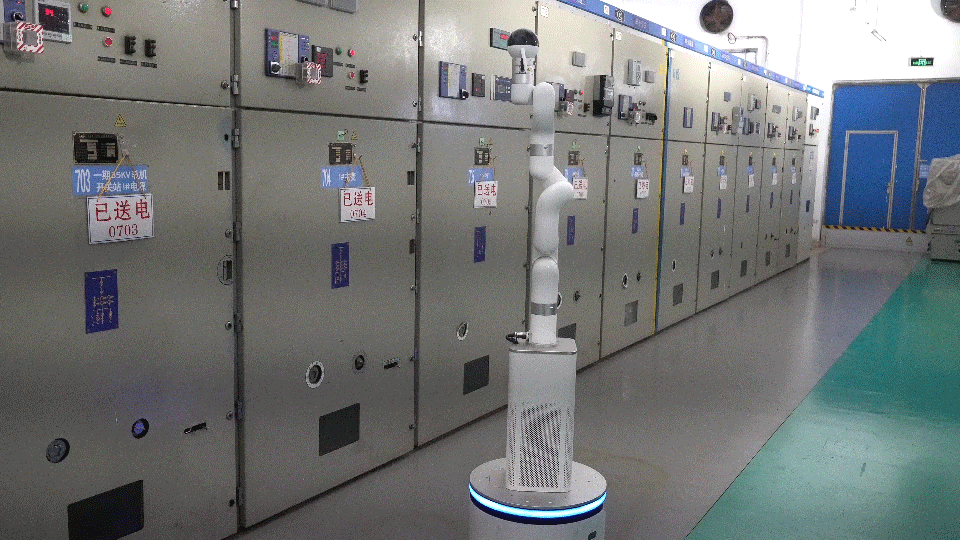 在冷轧厂35千伏变电站电气室内,一台拥有“360°旋转手臂”的智能巡检机器人正在工作。它沿着导轨缓缓“走”到每个机柜前,转动着头上的“眼睛”,就实现了对各类设备仪表数据和温度的探测,使运维管理智能化。