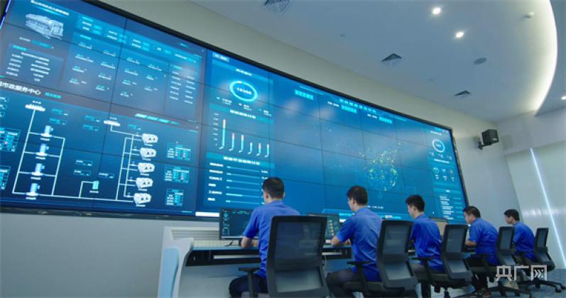 企业智能管控中心,工作人员可实时监控设备情况(央广网记者 庄滨滨 摄)