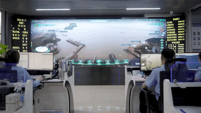 数据赋能生态保护,让吴涛体验到了科技带来的便利。过去,他和同事依靠骑摩托车巡逻,联系部门靠座机。如今,江阴启用长江禁捕退捕信息化防控平台——“江盾”平台,整合公安、海事、渔政等部门及码头企业700余套感知设备到一张“网”上。一张数字化大屏上,江面各区域动态实时切换,多部门联动处置,实现了沿江区域捕捞、排污、盗采全天候监管。